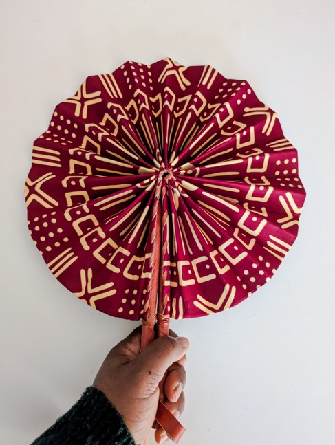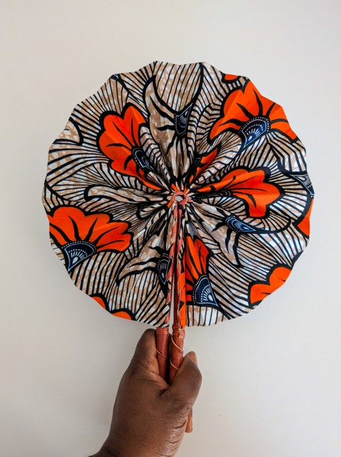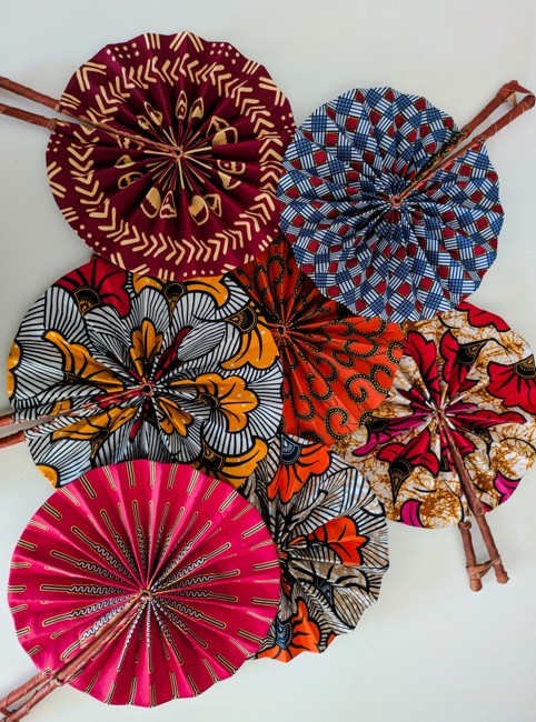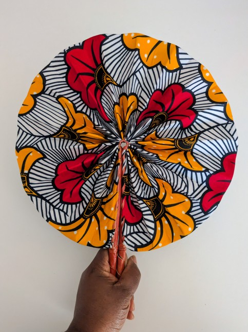 - l’éventail en tissu Wax est entièrement fabriqué à la main